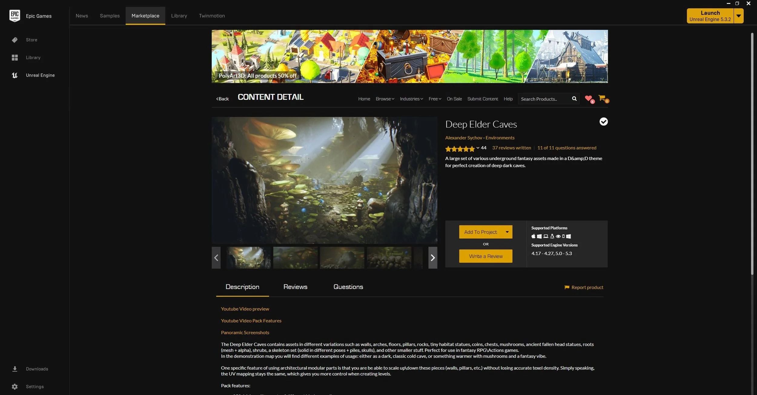 Deep Elder Caves For this design, I used the Deep Elder Caves content pack from the Unreal Engine Marketplace.